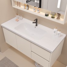 智能奶油陶瓷一體盆衛(wèi)生間浴室柜鏡柜組合輕奢簡約洗手臉盆洗漱臺